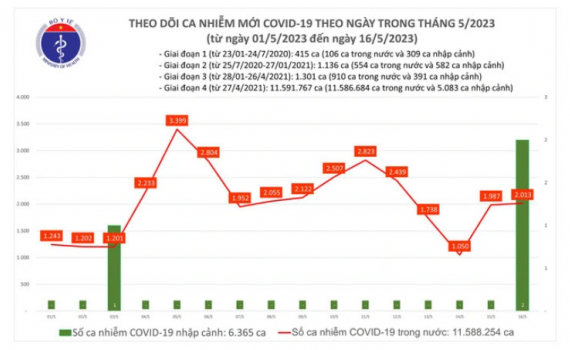 Theo Bản tin Bộ Y tế về tình hình chống dịch COVID-19, trong ngày 16/5, nước ta ghi nhận 2.013 ca mắc mới; có 275 bệnh nhân được công bố khỏi bệnh.