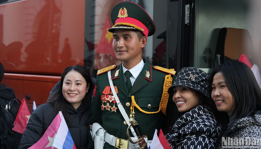 Người Việt Nam tại Nga nồng nhiệt chào đón các quân nhân Việt Nam hợp luyện duyệt binh trên Quảng trường Đỏ