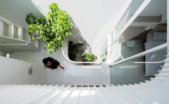 Nhà phố chỉ 42 mét vuông ngập ánh sáng và cây xanh nhờ giếng trời hình chữ D