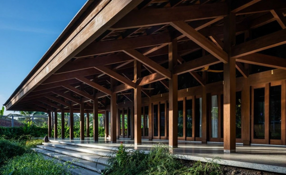 Sử dụng vật liệu và hình thái kiến trúc đậm chất truyền thống, công trình không chỉ đáp ứng nhu cầu tụ họp của gia chủ mà còn phù hợp với khí hậu nhiệt...