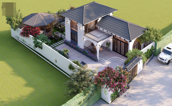 Nhà mái dốc có sân vườn, giảm 80% nhu cầu tiêu thụ điện năng