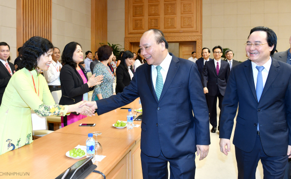 Thủ tướng Nguyễn Xuân Phúc khẳng định, Đảng, Nhà nước sẽ tiếp tục chăm lo phát triển đội ngũ nhà giáo, tạo điều kiện thuận lợi để các nhà giáo phát huy...