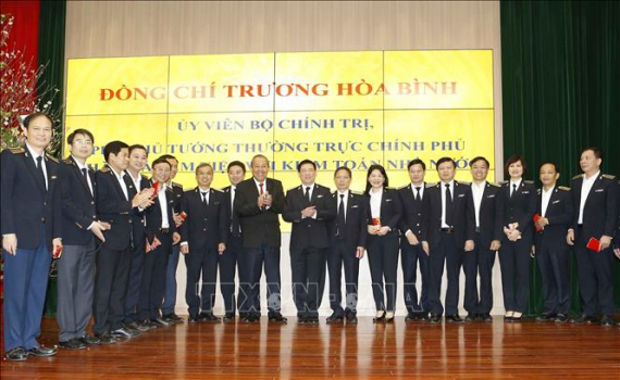 Ngày 12/2, tại Hà Nội, Ủy viên Bộ Chính trị, Phó Thủ tướng Thường trực Chính phủ Trương Hòa Bình đến thăm và chúc Tết tại Kiểm toán Nhà nước.