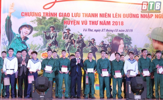 Sáng ngày 15/2, huyện Thái Thụy tổ chức buổi giao lưu, gặp mặt, tặng quà thanh niên nhập ngũ năm 2019.