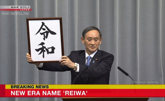 Chánh Văn phòng nội các Nhật Bản Yoshihide Suga, ngày 1/4, thông báo niên hiệu mới là Reiwa (Lệnh Hòa), thay thế cho niên hiệu hiện tại là Heisei (Bình...