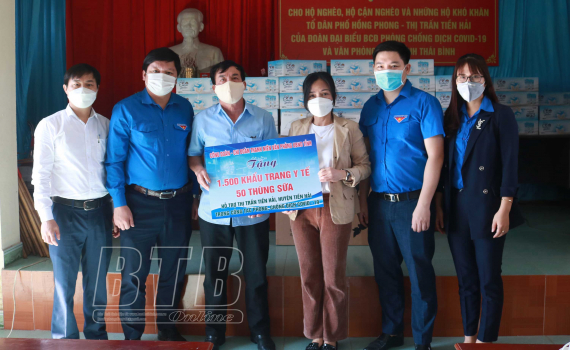 Sáng ngày 28/11, Công đoàn, Chi đoàn thanh niên Văn phòng UBND tỉnh tổ chức trao 3.500 khẩu trang kháng khuẩn và 70 thùng sữa hỗ trợ thị trấn Tiền Hải...