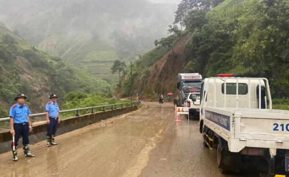 Quốc lộ 32, đoạn qua xã Hồ Bốn, huyện Mù Cang Chải tiếp tục bị ách tắc giao thông do hiện ở Yên Bái vẫn có mưa to gây sạt lở nghiêm trọng.