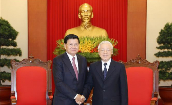 Tổng Bí thư, Chủ tịch nước Nguyễn Phú Trọng nhiệt liệt chào mừng đồng chí Thoong-lun Xi-xu-lít dẫn đầu Đoàn đại biểu Chính phủ Lào sang tham dự Kỳ họp lần...