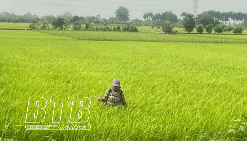 Kiến Xương: Phun trừ sâu cuốn lá nhỏ cho 100% diện tích lúa mùa