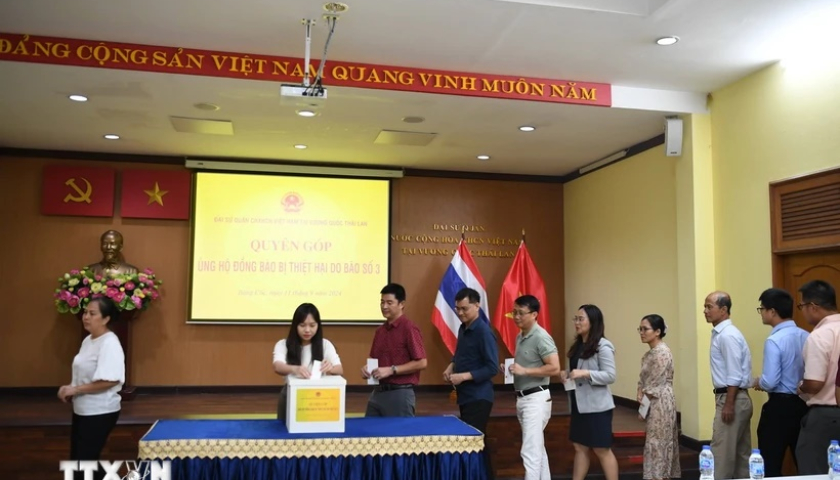 Đại sứ quán Việt Nam tại Thái Lan chiều 11/9 đã tổ chức buổi quyên góp để ủng hộ đồng bào trong nước bị thiệt hại do cơn bão số 3 (tên quốc tế là Yagi)...