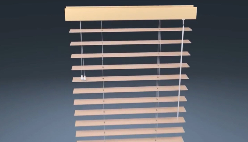 Rèm cuốn với các lá chớp nằm ngang có cơ chế hoạt động dựa vào dây kéo đơn giản, được sử dụng phổ biến để che cửa sổ.