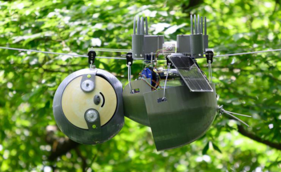 Robot Slotboth di chuyển bằng dây cáp có thể đo nhiệt độ, CO2, quan sát môi trường trong rừng giúp các nhà khoa học theo dõi, bảo vệ các loài thú quý...