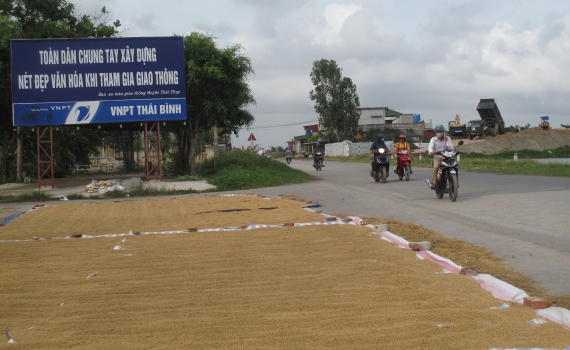 Thái Thụy: người dân lấn chiếm lòng đường phơi thóc lúa, rơm rạ