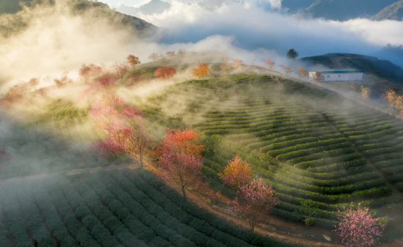Ngoài Fansipan hùng vĩ, bản Cát Cát yên bình... Sa Pa (Lào Cai) đẹp lạ với đồi chè Ô Long thơ mộng điểm xuyết những hàng hoa anh đào khoe sắc hồng thắm...