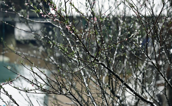 Những bông hoa đào, hồng bên các ngôi nhà tại đèo Ô Quy Hồ, Sa Pa (Lào Cai) bị tuyết phủ tạo nên vẻ đẹp thích mắt cho du khách nhưng trở thành nỗi lo lắng...