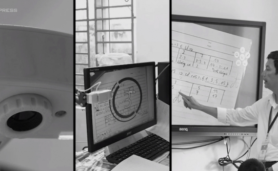 Thầy Đàm Bạch Long (Hà Nội) sáng chế máy chiếu vật thể đa năng giúp việc sửa và chấm bài tiện lợi hơn.