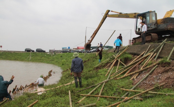 Khẩn trương khắc phục sự cố sạt lở tại tuyến đê biển số 5 xã Nam Phú (Tiền Hải)
