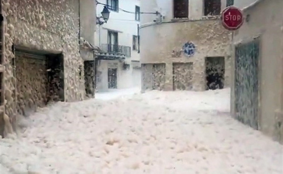 Bọt biển nhấn chìm đường phố Tây Ban Nha sau bão