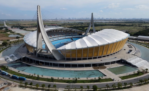 Sân vận động quốc gia Morodok Techo (Campuchia) hình dạng giống như chiếc thuyền buồm, có sức chứa 60.000 chỗ ngồi, sẵn sàng cho ngày hội thể thao Đông...
