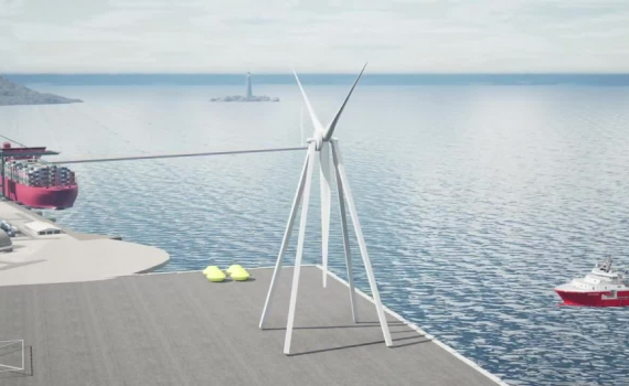 Turbine gió T-Omega Wind có 4 chân mỏng và đế nổi trên biển thay vì một trục cao, nặng như truyền thống, giúp giảm chi phí và dễ lắp đặt.