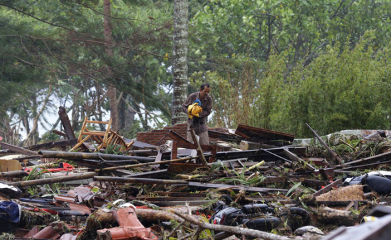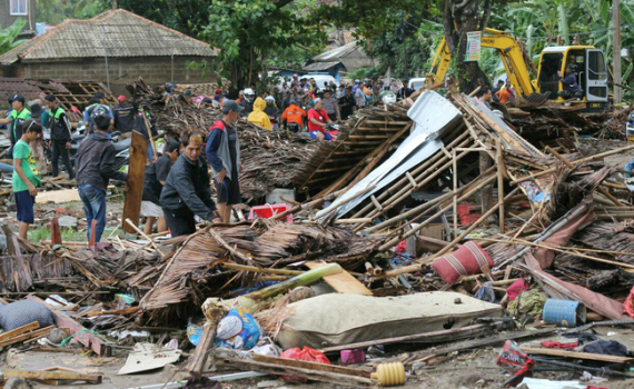Khung cảnh hoang tàn sau cơn sóng thần khiến ít nhất 384 người thiệt mạng ở Indonesia