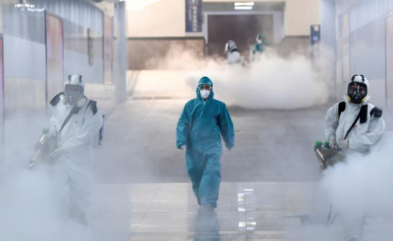 Tỉnh Hồ Bắc, Trung Quốc phun thuốc khử trùng đường phố