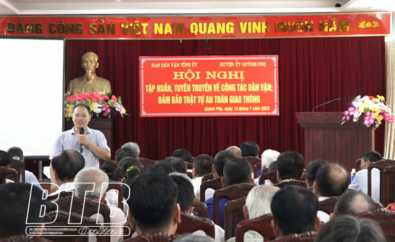 Sáng ngày 13/7, Ban Dân vận Huyện ủy Quỳnh Phụ tổ chức hội nghị tập huấn nghiệp vụ công tác dân vận cho đội ngũ cán bộ chủ chốt ở cơ sở năm 2023.