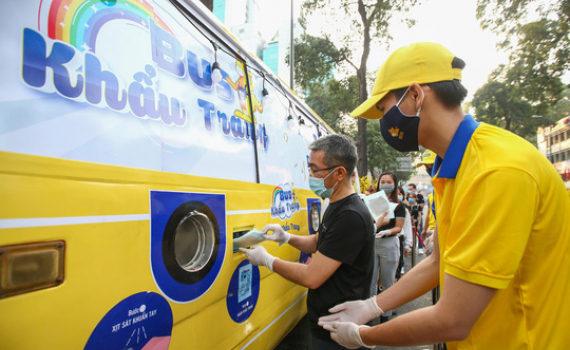 Xe buýt phát khẩu trang miễn phí tự động