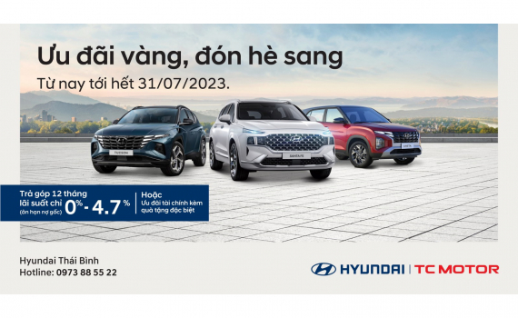 Từ nay cho đến hết 31/07/2023, Liên doanh ô tô Hyundai Thành Công Việt Nam (HTV) chính thức triển khai chương trình ưu đãi đặc biệt “Ưu đãi vàng - Đón hè...