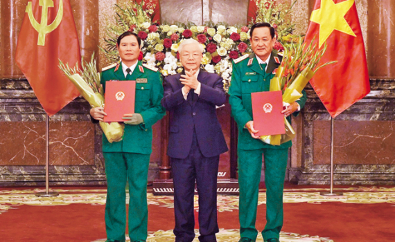 Tổng Bí thư, Chủ tịch nước Nguyễn Phú Trọng trao Quyết định thăng quân hàm Thượng tướng cho hai sĩ quan quân đội