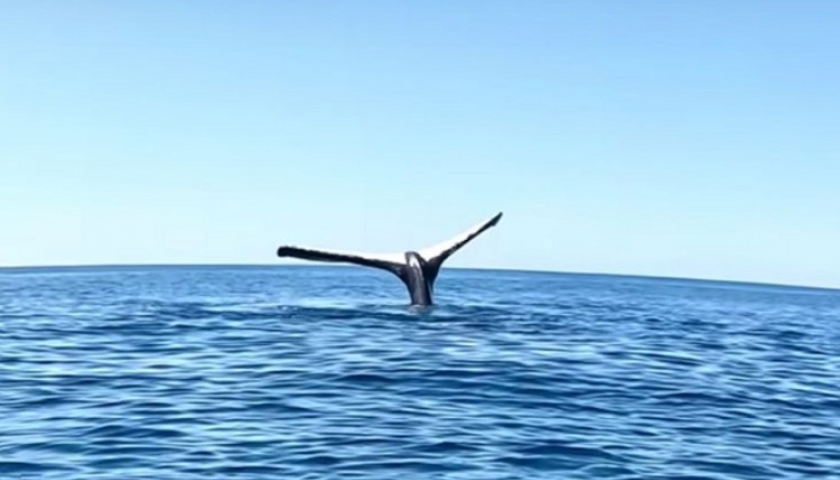 Trong lúc chèo một chiếc thuyền kayak trong suốt, Brodie Moss, một Tiktoker nổi tiếng, đột nhiên trông thấy chiếc đuôi cá voi dựng đứng trên mặt biển...