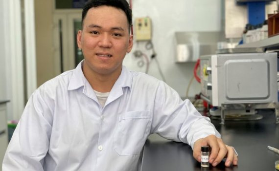 Thạc sĩ Hồ Gia Thiên Thanh, 26 tuổi, nghiên cứu xúc tác nano vàng khử chất độc p-nitrophenol có trong nước thải thành không độc, ứng dụng cho ngành...