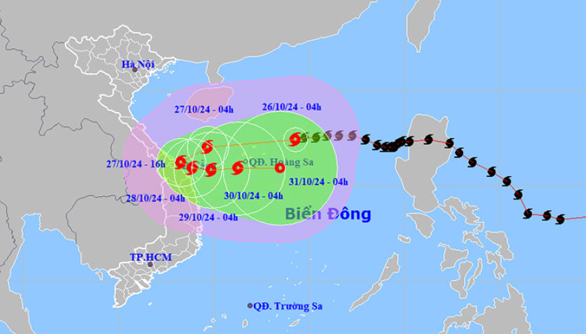 Theo Trung tâm Dự báo khí tượng thủy văn Quốc gia, hồi 4 giờ ngày 26/10, vị trí tâm bão ở vào khoảng 17,4 độ Vĩ Bắc; 114,3 độ Kinh Đông, trên khu vực...