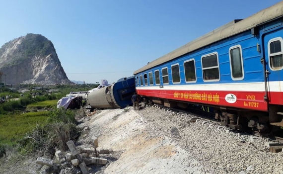 Đoàn tàu khách SE19 chở 400 khách đâm xe ben chở đá ở đường ngang có gác chắn khiến đầu máy và 6 toa lật xuống ruộng. Hai lái tàu tử vong trong cabin,...