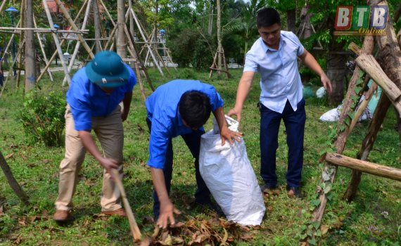 Chiều ngày 14/4, Đoàn Thanh niên thành phố Thái Bình tổ chức vệ sinh môi trường trong khuôn viên Đền thờ Liệt sĩ tỉnh.