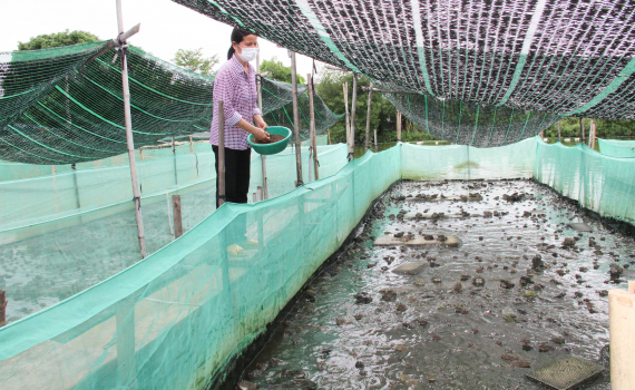 Từ việc chuyển đổi ruộng cấy lúa kém hiệu quả thành ao nuôi ếch và cá rô đồng, giờ đây mỗi năm gia đình chị Nguyễn Thị Rinh, thôn Phú Vinh, xã Minh Phú...