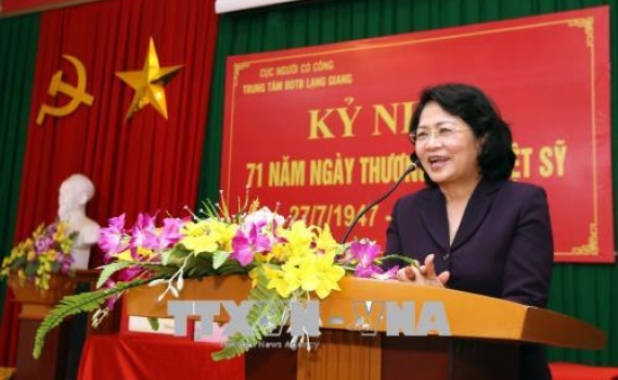 Phó Chủ tịch nước Đặng Thị Ngọc Thịnh khẳng định, Đảng, Nhà nước và nhân dân luôn ghi nhớ, tri ân những công lao, đóng góp của các thương, bệnh binh và...