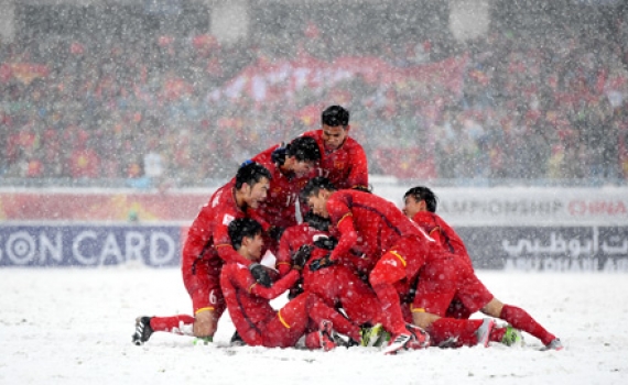 Có một hình ảnh làm lay động mạng xã hội sau trận chung kết, đó là khoảnh khắc Duy Mạnh cắm lá cờ trên “ngọn núi” tuyến trên sân Olympic ở Thường Châu rồi...