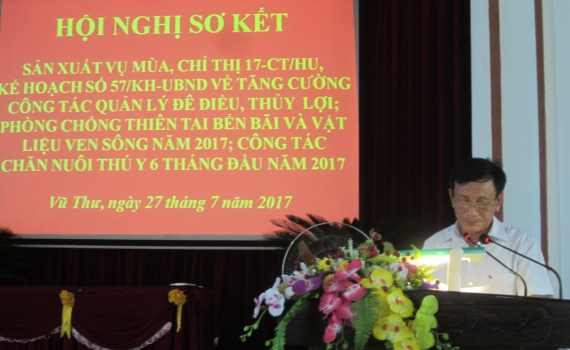 Hội nghị sơ kết Chỉ thị số 06/CT-UBND ngày 7/4/2017 của UBND tỉnh về tăng cường công tác quản lý đê điều, thủy lợi, chủ động phòng, chống thiên tai và tìm...