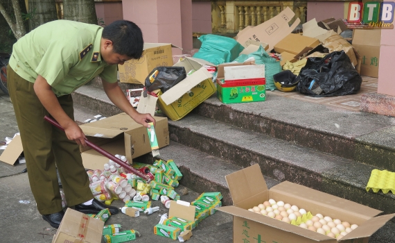 Chiều ngày 20/10, Chi cục Quản lý thị trường tổ chức tiêu hủy số lượng hàng lậu, hàng giả, hàng kém chất lượng có tổng trị giá hơn 177 triệu đồng.