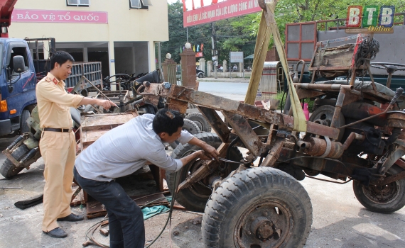 Kiến Xương tổ chức tiêu huỷ xe tự chế vi phạm luật giao thông đường bộ