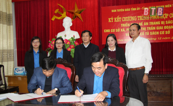 Chiều ngày 13/12, Ban Tuyên giáo Tỉnh ủy và Tỉnh đoàn tổ chức ký kết chương trình phối hợp công tác triển khai đề án trang bị sách cho cơ sở xã, phường,...