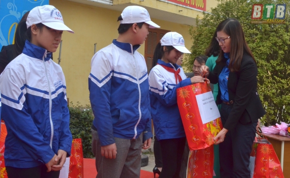 Chiều ngày 6/2, tại Trường THCS Tây Sơn (thành phố Thái Bình), Tỉnh đoàn tổ chức chương trình "Xuân tình nguyện – Tết yêu thương” và hội thi "Gói bánh...