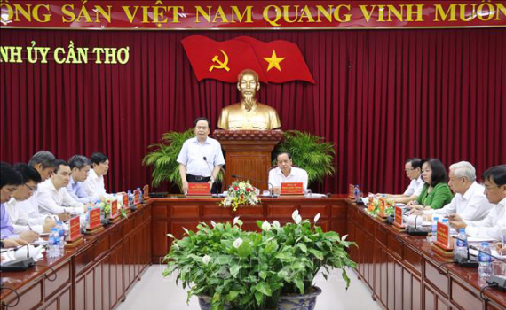 Chủ tịch Ủy ban Trung ương MTTQ Trần Thanh Mẫn lưu ý Cần Thơ cần quan tâm các vấn đề như: chú trọng công tác tuyên truyền trước, trong và sau Đại hội MTTQ...