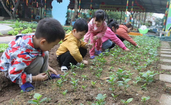 Vũ Thư: Phát triển vườn rau cho bé trong trường mầm non