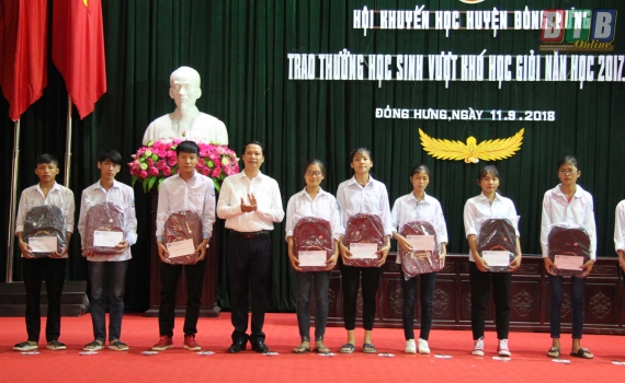 Chiều ngày 11/9, Hội Khuyến học huyện Đông Hưng tổ chức lễ trao thưởng cho học sinh vượt khó học giỏi năm học 2017 - 2018.