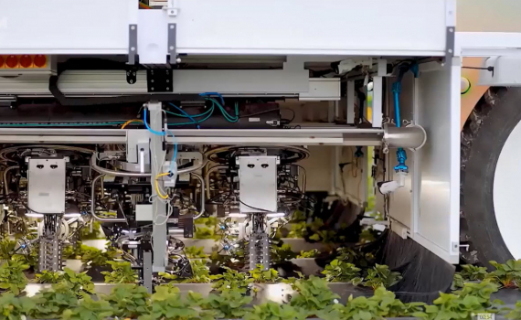 Công ty Mỹ chế tạo cỗ máy thu hoạch dâu tây tự động với khả năng tránh vật cản và trang bị 16 cánh tay robot làm việc độc lập.