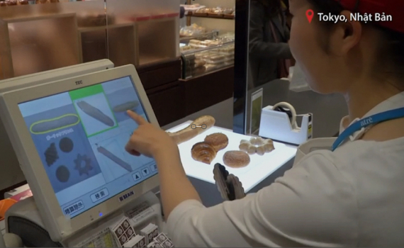 Tiệm bánh ngọt tại Tokyo sử dụng công nghệ quét để nhận diện các loại bánh và tính tiền tự động trong một giây.