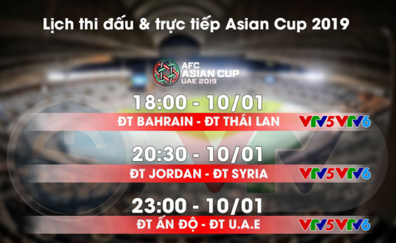 Lịch thi đấu và trực tiếp Asian Cup 2019 ngày 10/01: ĐT Thái Lan – ĐT Bahrain, ĐT Jordan - ĐT Syria, ĐT Ấn Độ - ĐT UAE