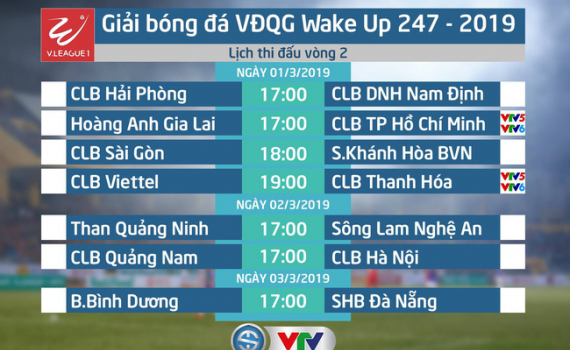 Lịch thi đấu và trực tiếp vòng 2 Giải bóng đá VĐQG Wake Up 247 - 2019